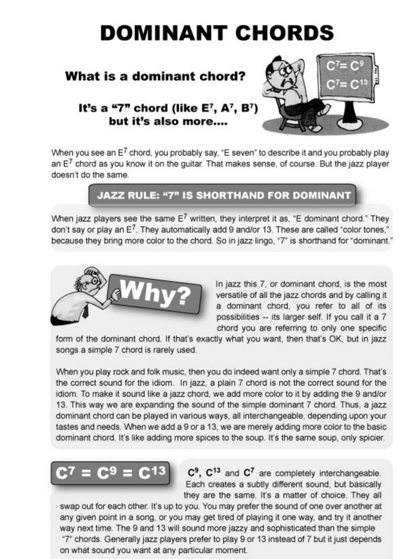 This is some very important information for you to understand if you are just beginning to play piano with a chord concept. Dominant chords are the most versatile and colorful of all the chords. You will learn how to make all of the possible variations when you study the "Rootless Chords Video Lesson."